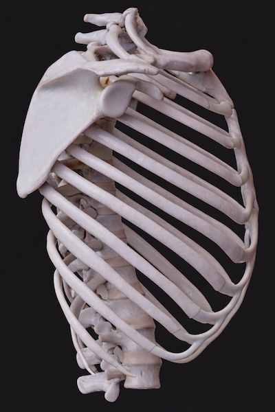 肩甲骨は実際には背中ではなく、体の側面に位置していることに気づくだろう。多くの画像はこの角度を正確に伝えていない。解剖学の教科書では、肩甲骨が肋骨の背面にぴったりと平らに乗っているように描かれている。しかし実際はそうではない。
